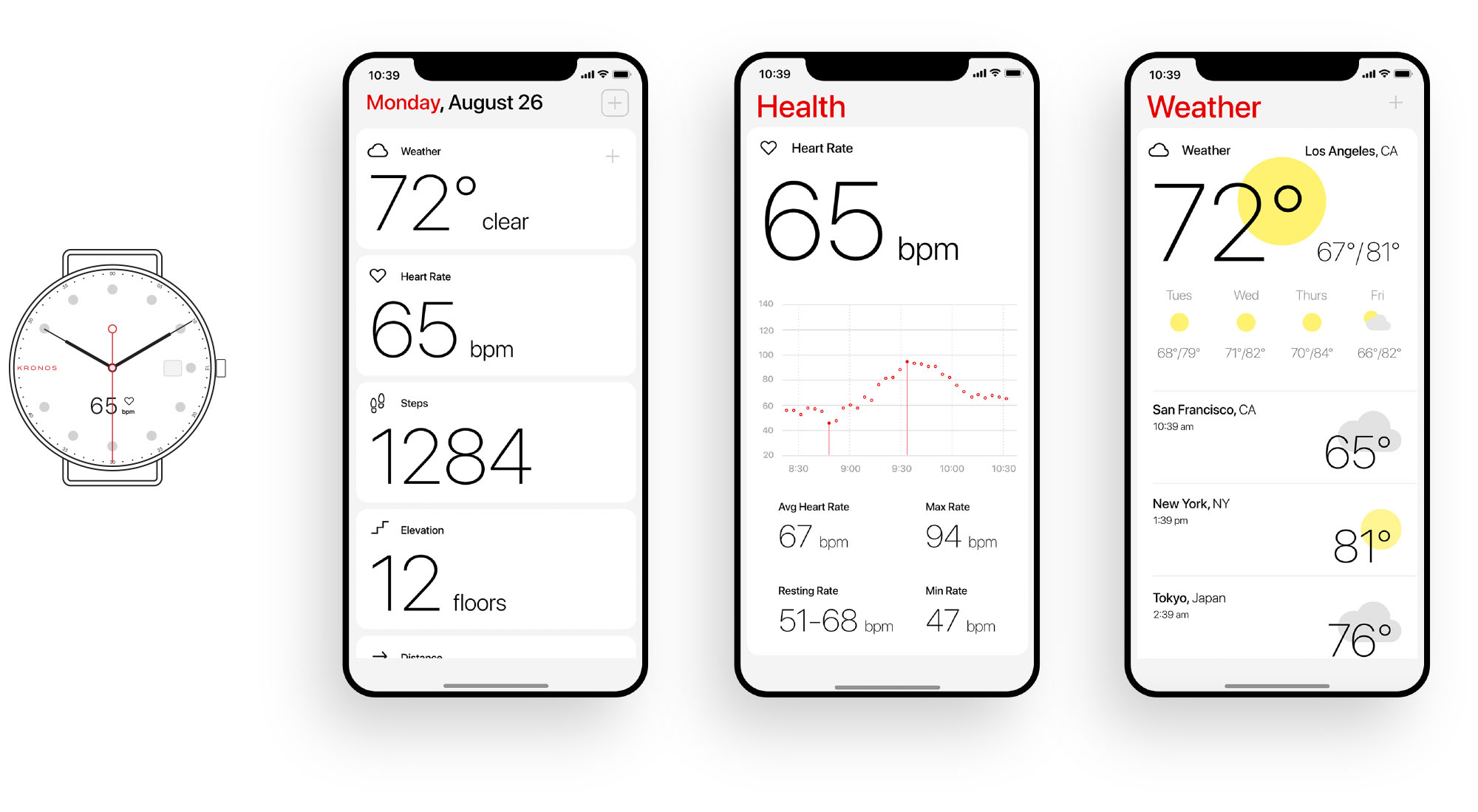 The Kronos mobile app was created to complement the minimal design language, as well as extend the customization of the watch itself.